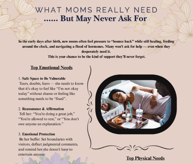 Practical care packages designed to support mothers and families during postpartum recovery.